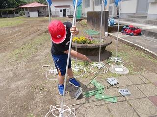 大きく育つように、草抜きなどの手入れをし、これから、ヘチマの成長の様子を観察していきます。