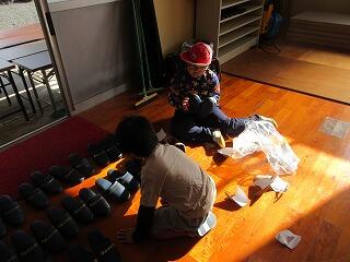 そば打ち体験の前日準備を行いました。1年生から8年生まで、全員で準備しました。そば打ちを教えていただくために来ていただくので、できるだけのおもてなしをしようと考えています。はじめの会・おわりの会のリハーサルもしました。