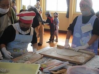 そばが湯がきあがったら、地域、保護者の皆さんと一緒にいただきました。いろんな太さのそばでしたが、出汁がよくきいた十割そばは、とてもおいしかったです。地域の方ともたくさん話ながら食べられました。