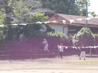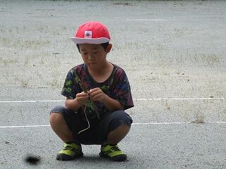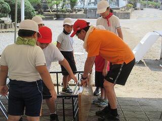 天気が少し悪かったので、渡り廊下を利用したのですが、体験の時間になると雨もやみ、外も使ってできました。