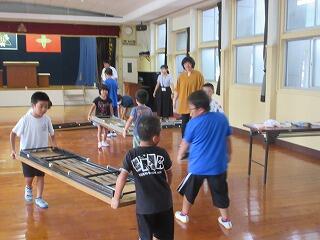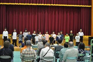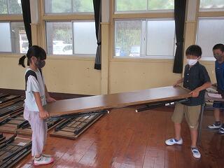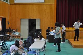 児童・生徒数が少ないため、こういう時に準備等が大変ですが、小学校1年生から中学生まで、子どもたちがよく動きます。この日もみんなの力で、立派な会場が出来上がりました。