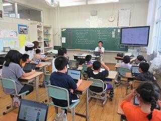 学習PCに9月から入ったアプリ「かくれてしまえばいのです」の使い方や、情報モラルなどについて、全校で学習しました。