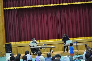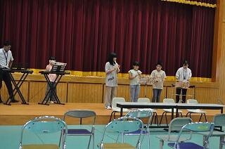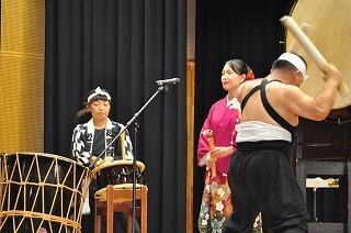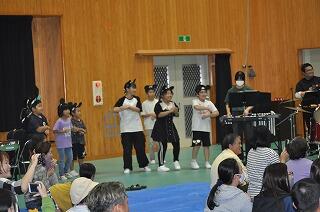特に、本校の子どもたちと職員は、高崎中学校吹奏楽部演奏の「ジャンボリミッキー」で、ミッキー耳をつけての踊りで楽しみました。最後の演目、地区民謡踊り「きらっと音頭」をみんな踊り会場が一つになりました。