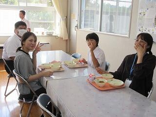 給食後の子どもたち主体の連絡会の様子も見ていただき、一緒に「ごちそうさま」をしました。保護者の方との給食は、子どもたちもうれしそうで、よりおいしかったことと思います。
