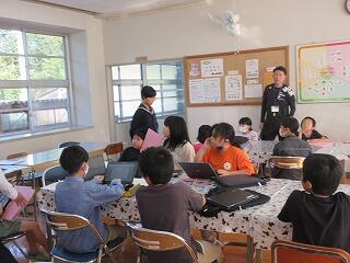 避難の後、警察の方から、子どもたちに講話をしていただきました。