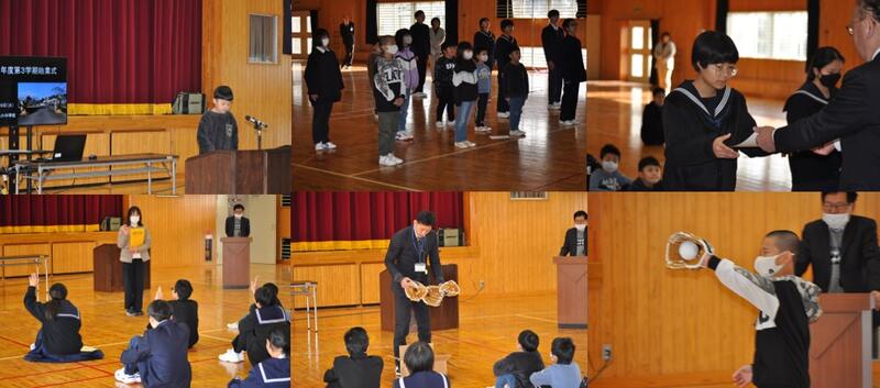 1月9日(火)、3学期がスタートしました。始業式では、児童生徒代表の3学期の抱負、校長先生の話、大谷グローブの紹介、各係の先生の話でした。