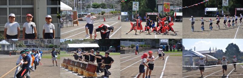 保護者や地域の方々も、玉入れ競争、50m走、グランドゴルフリレー、地区対抗リレー、地区対抗綱引きと多くの競技に参加していただきました。おかげさまで運動会が大変盛り上がりました。