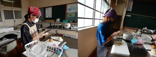 9月19日(火)、5年生が家庭科の授業で調理実習に取り組みました。作った料理は、じゃがバター、ホウレンソウサラダの2品でした。