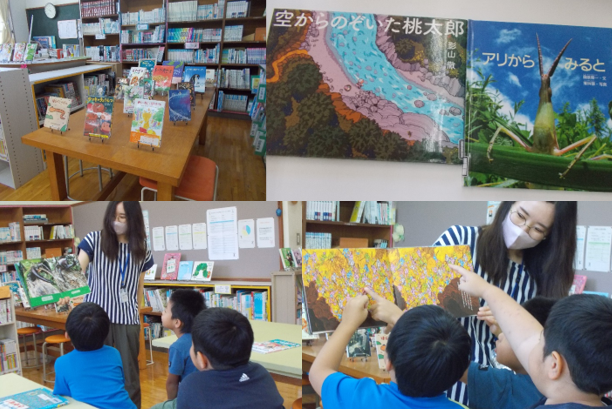 さて、今回の読み聞かせの本は、「アリからみると」と「空からのぞいた桃太郎」でした。