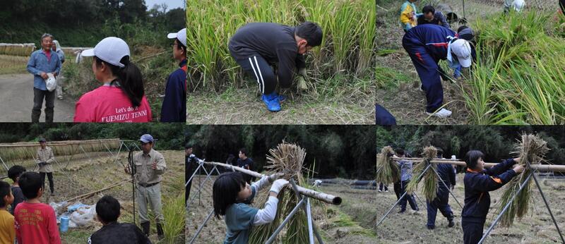 米は機械乾燥より天日干しの方が甘みも増し、大変おいしくなるそうです。これから脱穀を経て餅つきまで活動がつながります。昨年は感染症拡大防止のため、学校で試食まで行きませんでしたが、今年は楽しみです。