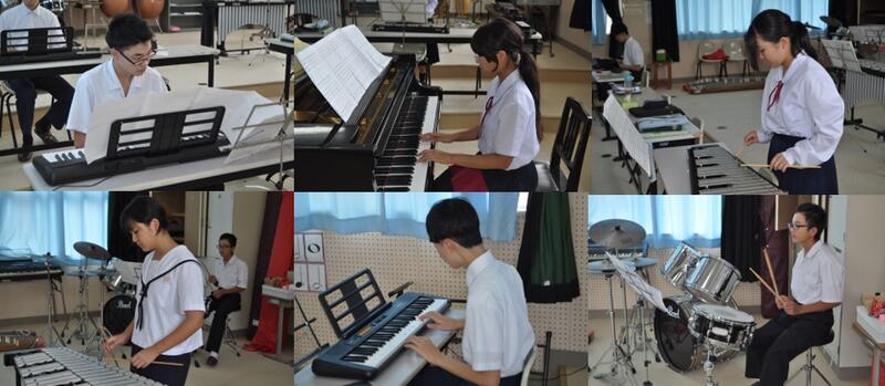 10月6日(金)、小学生と中学生が文化祭で披露する合奏「千本桜」の合同練習をしました。これまで、別々に練習してきましたが、この日が初めての合同練習で、音合わせをしたところです。