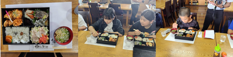 中学生は、8月に行われる弁当の日に向けて、どのようなことに気を付けて作ったら良いのか考えました。①栄養のバランスを考えること、②いろいろな調理法・味付け、③5色の食材を使って彩り良くという3つのポイントについて理解し、実際にメニューを考えました。