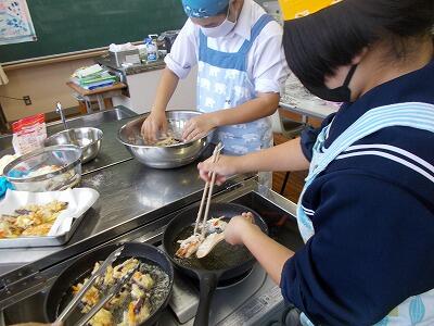 安全面を考慮して、木しゃもじの上へ乗せて、
