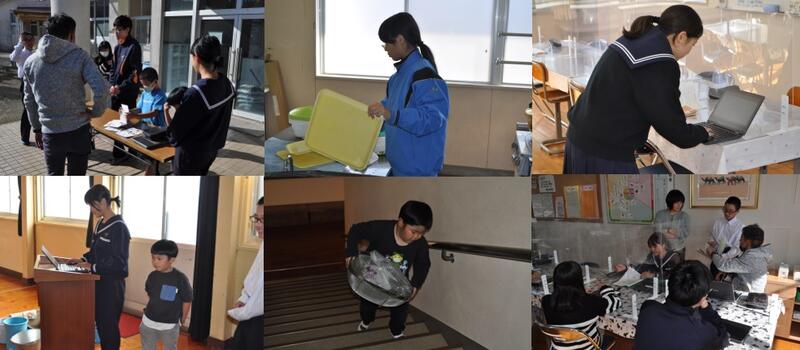 基本的に2つの班に分かれて準備を進めています。1つの班は、地域や保護者の受付やネームプレート、開会式と閉会式の準備をしました。本番を想定した具体的な準備でした。もう一方の班は、作業に使う道具を消毒するための準備をしました。道具を調理室に運んで消毒するだけにしておきました。翌日(21日)に煮沸消毒をすることになっています。