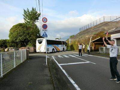 修学旅行団についての連絡です。2組が18:57ごろ小林IC付近を通過しました。15分程度で到着予定です。お迎えに来られるご家庭は対応をお願いいたします。若干の混雑が予想されますが、交通安全に留意してお越しください。