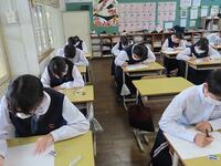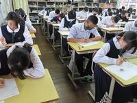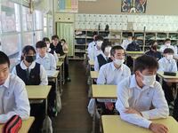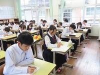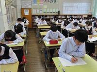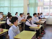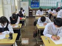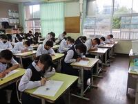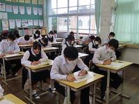 本日の6時間目終了後に、学力向上の取組として「もっと伸ばしテスト(数学)」を行いました。今までに、国語と社会のテストを終えています。時間は20分間で、数学の場合問題数は全学年25問です。内容は基礎的な計算問題で、満点のみ表彰されます。できるだけ多くの生徒が満点を取ることを期待します。