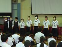 本日6時間目終了後に、県中学校秋季体育大会に出場する選手のために壮行会を行いました。各部の代表が大会への決意を述べ、その後生徒代表激励の言葉、校長激励の言葉と続きました。最後は男子バレーボール部主将が選手宣誓を行い式を終えました。県大会に出場する選手の皆さんの活躍を祈ります。頑張ってください。