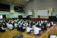 本日6時間目に、全校生徒を対象にした薬物乱用防止教室を行いました。講師として、門司税関 細島税関支署 宮崎空港出張所の阿部様と平石様にお越しいただきました。薬物乱用防止教室の主な目的は、「子どもに薬物乱用を始めさせない」ことで、薬物の危険性に関する正しい知識を普及し、誘惑に断る力を身につけさせることです。具体的には、薬物乱用の心身への弊害や社会に与える影響を身近な問題として捉えさせ、正しい知識と判断力に基づいた行動選択ができる子どもを育成することを目指すために毎年行っています。今回の講話では、「税関について」「不正薬物について」「薬物乱用について」「税関による不正薬物の摘発事例」「【運び屋】にならないために」について動画も交えながら話をしていただきました。阿部様、平石様、ご多用な中にお越しいただきありがとうございました。