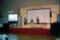 本日、早朝より保護者の皆様方や地域の皆様方、来賓の皆様方にお越しいただき令和7年度細野中学校文化発表会を行いました。今年度のスローガンは、「和顔愛語~細野中でつなぐ笑顔の輪~」です。開会行事の後、国語意見発表からプログラムが始まりました。意見発表では3名の生徒が個性あふれるテーマで自分の考えを根拠をもとに堂々と発表してくれました。次の発表は英語暗唱・弁論です。地区大会で発表してからかなり時間が経過し、覚えなおすのにも苦労したと思いますが、3人とも頑張って発表してくれました。1年生の総合的な学習の時間の発表は、「小林市の魅力再発見」です。農業・食べ物・自然・観光・方言をテーマに寸劇も交えながら楽しく発表することができました。1年生の魅力を再発見することができました。2年生の総合的な学習の時間の発表は、「平和・防災・職場体験~つなげよう現在の学びを未来へ~」です。3つの班に分かれて調べ学習を行い、その成果を立派に発表することができ、現在の学習が未来につながることを感じさせてくれました。11月下旬の修学旅行でどのような学びをするのか、楽しくなりました。次は合唱コンクールです。どの学年も1週間前のプレコンクールの時よりも成長していて、素晴らしい演奏を披露してくれました。金賞を受賞した3年生は、来月行われる地区音楽大会に出場します。大会に向けさらなるレベルアップに期待します。吹奏楽部の演奏では、ダンスも交えた楽しい演奏を披露し観客を魅了しました。来月の定期演奏会も楽しみです。最後のプログラムは、3年生の劇「仮面」です。自分で考え判断し表現することの大切さや生き方についても考えさせられる内容でした。演技力も素晴らしく、さすが最高学年だと感心させられました。夏休みが終わり2か月間取り組んできた成果が十分発揮された素晴らしい文化発表会でした。実行委員の皆さん、生徒の皆さん、そして指導していただいた先生方すべてに感謝します。ありがとうございました。