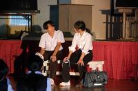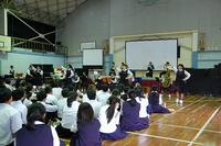 本日の3・4時間目に鑑賞教室を行いました。講師は観世流シテ方能楽師の梅若紀佳様と梅若志長様です。わざわざ東京からお越しいただきました。鑑賞教室は毎年行っていますが、今年度は「体験から学ぶ初めての能【敦盛】」です。お能は、600年以上の歴史をもつ日本の伝統的な舞台芸術です。その特徴は、能面を用いることや、歌や舞、演技が一体となった歌舞劇的な表現にあります。今日は『平家物語』を題材に、世阿弥が作ったとされる能【敦盛】を中心に学びました。かつて、武将たちが愛したお能は、観るだけではなく、自分たちでも演じて楽しむものだったそうです。今回の鑑賞教室では、講師あいさつの後に、「お能とは?」「能装束着付けの鑑賞」「能【敦盛】解説・楽しみ方レクチャー」「能【敦盛】の一部分を鑑賞」「謡体験」「すり足・そのほか型の体験」を行いました。子どもたちは初めての体験に戸惑いながらも楽しく鑑賞することができました。講師の先生方、様々なお世話をいただいた細野小学校の上畠先生、本日はありがとうございました。