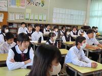 本日の5・6時間目に、6名の講師の方々にお越しいただき1年生を対象に「13歳のハローワーク」を行いました。この取組は、キャリア教育の一環で、様々な分野で活躍する大人の話を聞き、働くことの意義や喜びを学んだり、他者の生き方や考え方を知り、自己理解を深めたり、地域社会への関心と愛着を高めたりする目的があり、毎年1年生で実施しています。この学習が2年生での職場体験学習につながります。本日の学習では、講師の方の自己紹介(仕事内容を含む)の後に、生徒からの質問を受けてそれに答える形で目的に迫っていきました。子どもたちも積極的に質問するなど意欲的に取り組むことができ、充実した学習となりました。実施に当たりご協力いただいた小林市キャリア教育支援センターの佐土原様、講師の皆様方、本日は誠にありがとうございました。