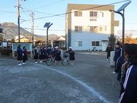 12月20日(土)の午前中に「根性行進」を実施しました。天気が心配でしたが、気温も低すぎず天候にも恵まれました。行程は約10kmで、学校⇒牧場⇒出の山公園⇒牧場⇒霧島岑神社⇒学校です。歩きながらごみを拾い、友達と会話をしながら行進をしました。途中、保護者の方々に交通指導をしていただき、安全に行進することができました。また、昼食時には早朝より準備をしていただいた温かい豚汁や美味しい唐揚げをふるまっていただきました。ご協力いただきました保護者の皆様方、本当にありがとうございました。子どもたちも「根性」が身に付いたと思います。