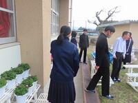 今朝体育館前で作業をしている2年生を見かけました。話を聞くと、卒業式で用いた花の鉢の片づけをしているとのこと。頼まれた仕事に嫌な顔一つせず黙々と取り組んでいました。4月からは最上級生です。安心して細野中学校を任せられそうです。