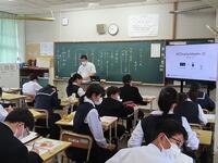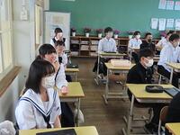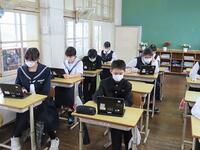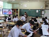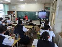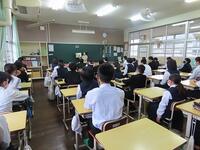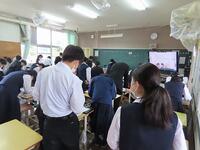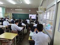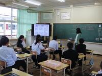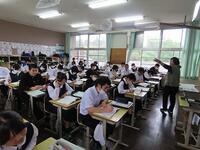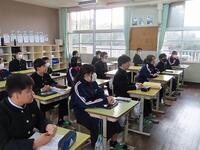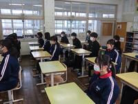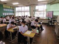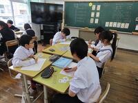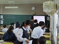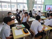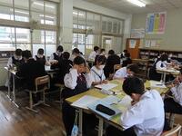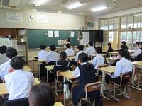 本日2時間目の授業の様子です。1年生は理科、2年A組は理科、C組は社会、3年A組は英語、B組は社会です。映像を見ながら学習したり、作業をしたり、グループ活動をしたりなど様々ですが、しっかり学習に取り組んでいます。