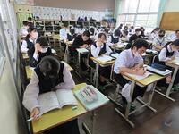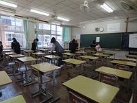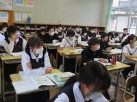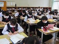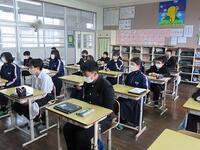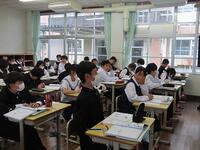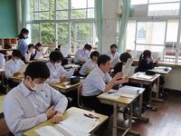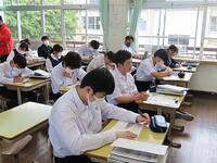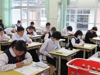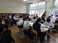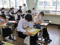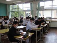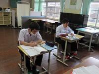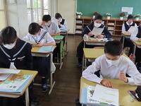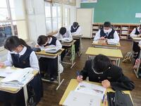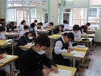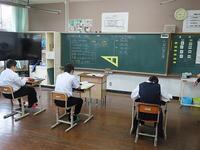 本日の1時間目、全学年県数学一斉テストに取り組んでいる様子です。真剣な表情でテストに臨んでいます。テストは自分の苦手なところを把握する意味でもとても大切なものです。得意なところはさらに伸ばし、弱点は克服しましょう。2時間目は、2・3年生が県英語一斉テストに取り組みます。