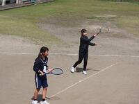 本日の昼休み時間の様子です。気温は24℃とかなり暑いですが、先生を誘ってテニスやサッカーをして元気よく遊んでいます。先生も生徒も楽しそうです。
