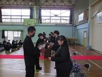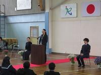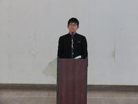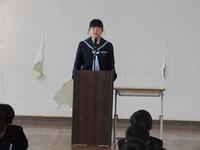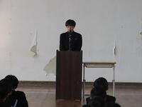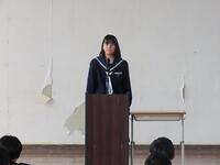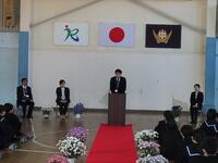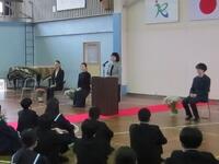 本日修了式を行いました。1・2年代表の生徒及び生徒会の生徒が1年間の反省と新学年の抱負を発表しました。原稿を見ることなく、自分の言葉でしっかり発表することができました。4月から1・2年生全員が進級し、新1年生を迎えます。下級生の手本となる先輩になってほしいと思います。明日から11日間の春休みです。命を大切にして元気よく過ごし、新年度を迎えてほしいものです。