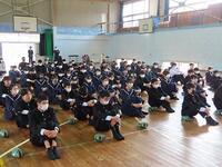 本日の3・4時間目に、2回目の全校体育を行いました。あいにくの雨のため地区体育館での練習となりました。今回の練習では、「ホソノソーラン」を踊りました。全員で合わせるのは初めてでしたが、まずまずの出来栄えでした。覚えたての1年生も一生懸命に踊っていました。本番では堂々とした演技を披露しましょう。
