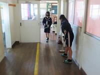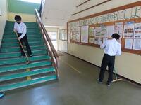 本校では、清掃に無言で取り組んでいます。生徒数の減少に伴い、清掃場所に割り当てることのできる人数は限られていますが、黙々と清掃に取り組みます。無言清掃は自分との対話です。今後も継続して取り組んでほしいと願います。