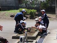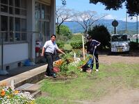 明日は親子美化活動を行います。本日は明日の作業の効率化を図るため、事前活動で草刈と草抜きをしていただきました。午後3時からの活動で、暑い中作業をしていただきました。校内がとてもきれいになりました。ありがとうございました。明日もよろしくお願いいたします。