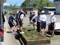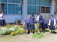本日の午後、花の植え替えのために花壇の整備を行いました。クラスごとに花を抜き、新しい花を植えるための準備をしました。暑い中、作業をした生徒の皆さん、お疲れ様でした。