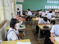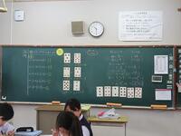 本日の3時間目、1年生数学の授業の様子です。「正の数・負の数」の単元を学習していました。理解を深めるために、トランプを使ってゲーム形式で学習に取り組んでいました。この単元では、昔からよくトランプを使います。みんな楽しそうに学習に取り組む様子が見られました。