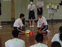 本日の3・4時間目に、3回目の全校体育を行いました。3時間目は全校団技「竹取物語」です。男女別で試合を行い、中央に置いた竹を取り合います。本番さながらの熱の入った勝負が見られました。4時間目は団活動です。どちらの団も応援優勝を目指して頑張っていました。