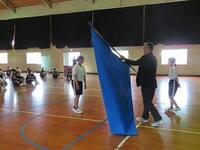 本日の3・4時間目に、4回目の全校体育を行いました。役員指導と同時に明日の予行練習の準備もしました。そのあとは、団活動や特選種目の練習を行いました。体育大会本番の天気が心配ですが、生徒の皆さんの元気で雨雲を吹き飛ばしてほしいものです。