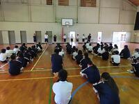 本日、連休前集会を行いました。明日から4連休です。連休は十分楽しんでほしいですが、くれぐれも交通事故や水難事故等に遭わないように安全に過ごしてほしいものです。「自分の命は自分で守る」このことを常に心がけてほしいと思います。
