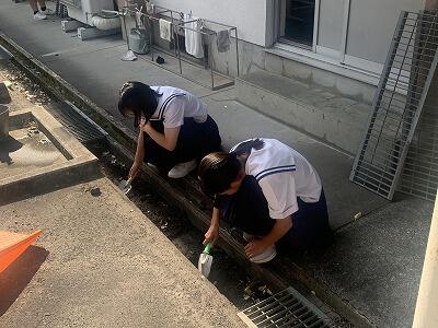湿度が高く、少し体を動かすと汗をかいてしまう天気ですが、生徒たちは清掃活動を頑張っています。わずか10分間の掃除ですが、10分あればかなりきれいにすることができます。自分たちの学校を自分たちできれいにする、これも日本の伝統だと思います。