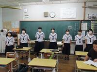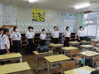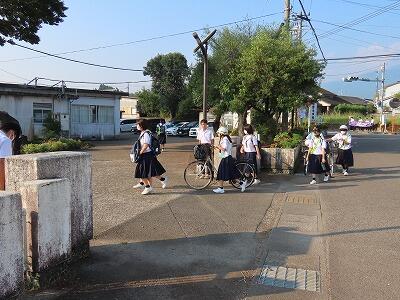 夏休み明け2日目の登校の様子です。残暑厳しい中、子どもたちは元気よく登校しています。また、伝統となっているあいさつ運動にも自主的に取り組んでくれています。