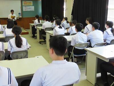 少し難しい表現もありましたが、生徒は真剣に観劇してました。当時の人々が置かれた状況に想いをはせ、平和の大切さについて考えるきっかけになったと思います。「サラみやざき」の皆さん、ありがとうございました。