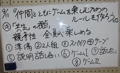 テストの終わった3時間目、3年生が地区体育館でバレーボールを行っていました。準備運動の後に、チームごとにパス練習やスパイク練習、サーブ練習を行いました。その後チームごとに集まり、全員が楽しめるルール作り(競争性を保ちながらの)を行いました。また、チームとして盛り上がるための対策についても話し合う様子が見られました。その後試合を行い、終わった後は再び話し合いをし、反省を生かし改善点について考えました。得意な人や苦手な人が皆楽しめるルール作りは大変そうでしたが、共生の視点を大切にしながら話し合いを行うことができました。さすが3年生だと感じさせられました。