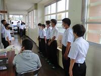 今朝はやや蒸し暑さを感じましたが、生徒たちは元気よく登校してきます。伝統のあいさつ運動ももちろん行っています。また、同時にボランティア活動をする生徒もいます。教室に入ると黙々と朝自習に取り組みます。そこにはいつも通りの光景が広がっています。生徒の皆さん、今日も充実した一日を送りましょう。