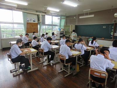 1年生は技術の授業と自学自習、2年生は英語と理科の授業、3年生は音楽の授業の様子です。梅雨の晴れ間で、やや暑かったのですが、しっかり授業に取り組んでいました。明日も頑張ってください。