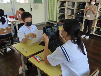 本日の5時間目に、1年B組で総合的な学習の時間の授業がありました。今週の木曜日と金曜日の2日間、1年生は農業体験学習を行います。今日の授業では、自己紹介やインタビューの練習を行い、その様子を動画で撮影し、互いに評価しながらより良いものを作り上げていくことに挑戦していました。子どもたちも意欲的に取り組み、授業の終末では、インタビューで気を付けることや頑張りたいことをグループで話し合い、その結果をみんなで共有しました。充実した農業体験学習になることを願っています。