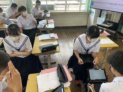 本日4時間目に、全校一斉で「なぜ学ぶのか」について考える授業を行いました。毎日当たり前に授業を受けていますが、「なぜ学ぶのか」を考えることで、学びに対する意欲が向上することを考えて行いました。職員室からzoomを使って各教室に配信を行いました。「なぜ学校で勉強するのか」「将来就きたい職業」について周りの友達と意見交換をしたり、動画を視聴したりしました。また、タブレットを使いモニターに表示されたQRコードを読み取り、「AIで今ある仕事の49%がなくなる」と言われていることについての感想を記入・集約し結果を共有しました。不安に思う生徒も見られたので、否定的にとらえさせるのではなく、人間に求められる新たな仕事がたくさん生まれることにもふれました。その後、将来の変化を予測することが困難な時代を生き抜くためにはどんな力が必要なのかを考えました。今回の授業で、少しでも学びに対する意欲が高まることを期待します。