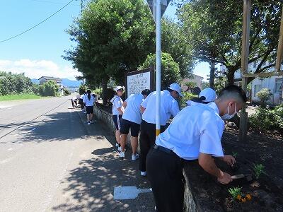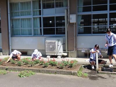 昨日の2時間目に、3年生が花の苗植えと花壇の草抜きを行いました。かなり暑くて大変でしたが、誰一人文句も言わず黙々と楽しそうに作業をしてくれました。嫌な顔一つせず、学校のために自分たちにできることに真摯に取り組む姿には感心しました。この3年生の姿勢が、きっと後輩にも受け継がれることでしょう。