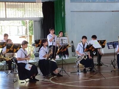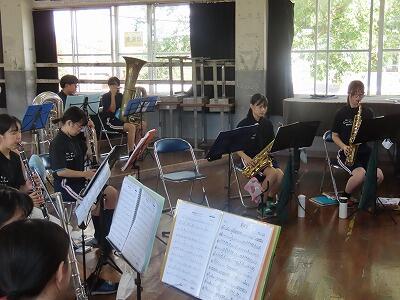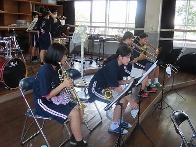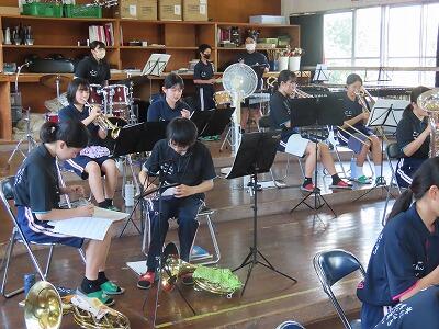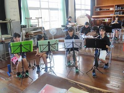 吹奏楽部の活動の様子です。エアコンは入っていますが、古いためあまり涼しくありません。しかし、子どもたちはそれぞれ自分のパート練習に意欲的に取り組んでいます。技能を向上させるためには、コツコツ一歩ずつ着実に歩みを進めるしかありません。粘り強く練習に取り組んでほしいものです。