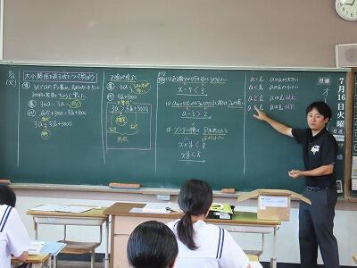 1年生数学、2年生理科、3年生社会、C組英語の授業の様子です。連休明けですが、疲れた表情も見せず元気よく授業を受けています。教科によっては、夏休みの宿題も配られています。今週が終われば、いよいよ夏休みです。夏休みまで残り4日、生徒の皆さん頑張りましょう!